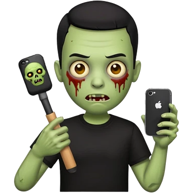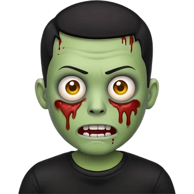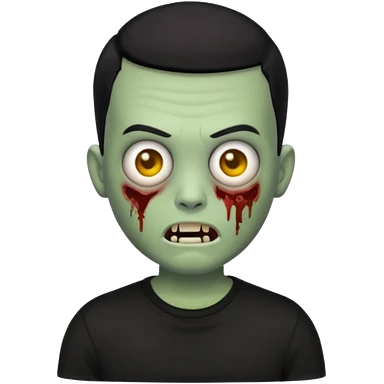 zombie iPhone emoji with buzz cut black hair and black t-shirt emoji