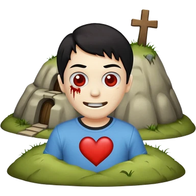 zombie emoji with short black hair and i ❤️ haunted mound t-shirt emoji