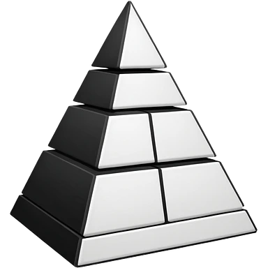 2D triangle with four horizontal lines drawn inside with vertical lines drawn in each 'section', to make boxes that become less and less as it goes to the top to demonstrate a social hierarchy (all black and white) emoji