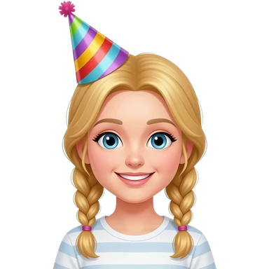 women with golden hairs braid and wear party hat emoji