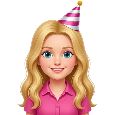 girl with golden long hairs and vibrant pink shirt wear party hat emoji