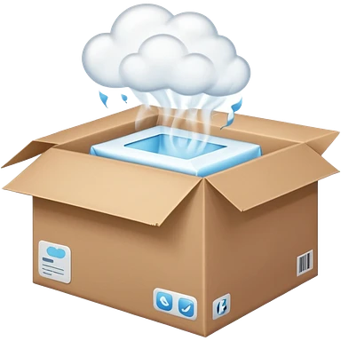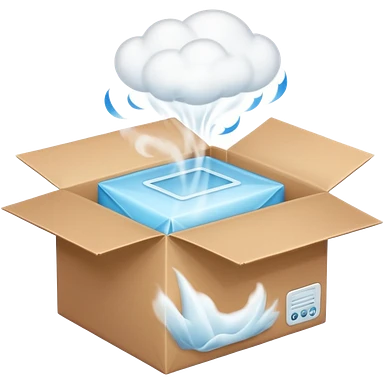 Generate a realistic emoji-style icon of the an open package which is empty and air is coming out of it. Out of the package steam or air is coming out of it emoji