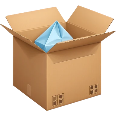 Generate a realistic emoji-style icon of the an open package which is empty and air is coming out of it. Out of the package air is coming out of it and the package is empty from the inside emoji