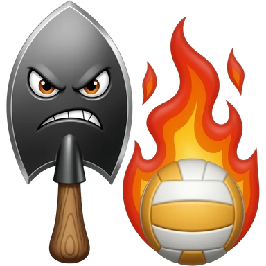 Fierce character cartoon spade emoji with flames and volleyball emoji