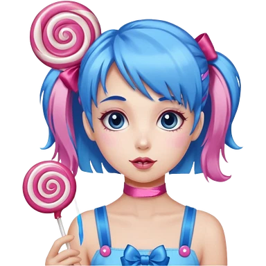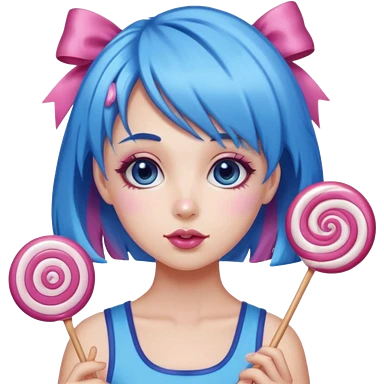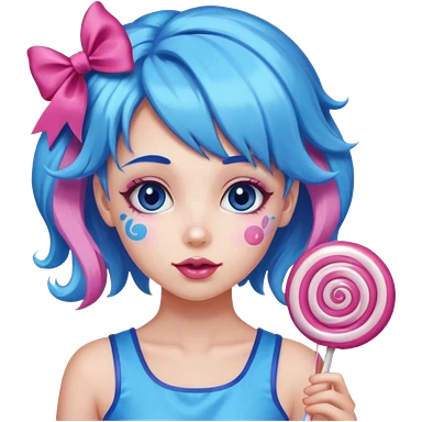 candy girl from candyland blue pink mixed hair with ribbon emoji