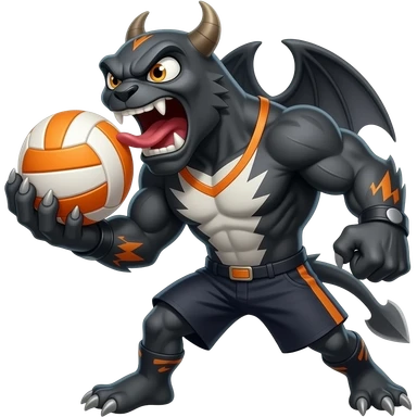 Fierce character cartoon spade emoji eating a volleyball emoji