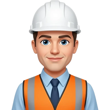 preciso de um emoji de encgenehiro com capacente branco camisa azul clara e colete laranja com rlefexivo emoji