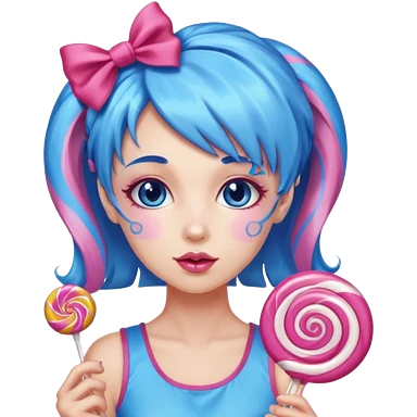 candy girl from candyland blue pink mixed candy hair with ribbon and emoji