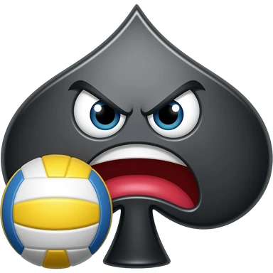 Facial expression angry cartoon spade emoji eating a volleyball emoji