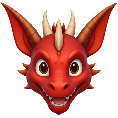 Cute Red dragon smile. dark horns, pointed ears. Brown mane hair. Head only, Headshot emoji