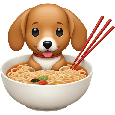 retro arcade style weenie dog eating ramen noodles out of bowl with chopsticks emoji