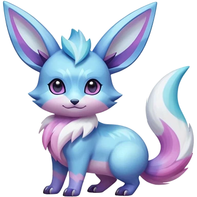 Shiny Pastel Colorful Purple-Violet-Pink-White-crystallic Iridescent Exotic Minccino-Aurorus-Glaceon-Fakémon-hybrid-creature (full body) emoji