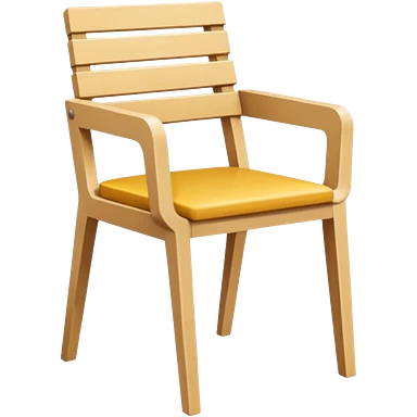 style wooden chair made of light brown wood with a yellowish tone. The design should match the reference image — modern and geometric with a solid, squared frame and slatted backrest and seat. Clean lines, minimalistic style, soft shading, and no background. emoji
