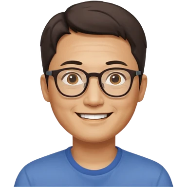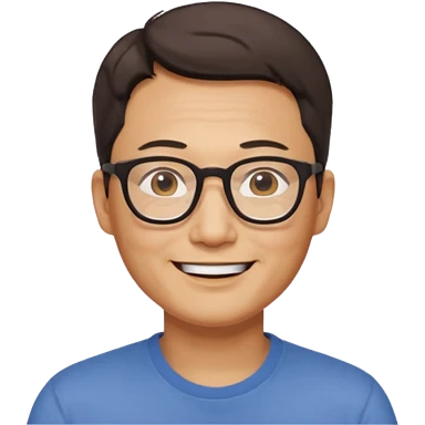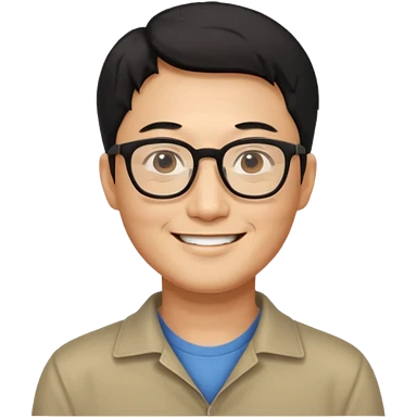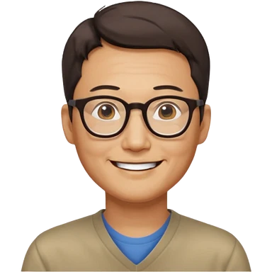 안경을 낀 40대 표준 체격의 한국인 남성, 머리가 아주 짧음, 활짝 웃고 있음 emoji