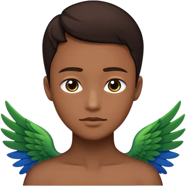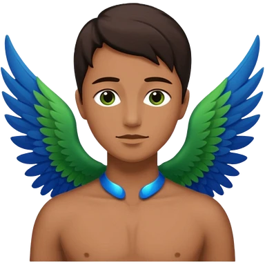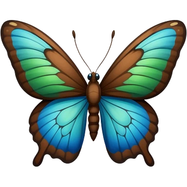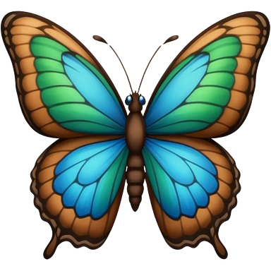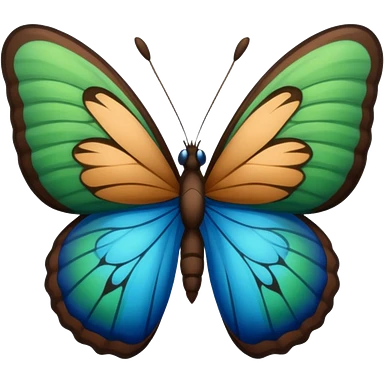 Այս նկարի նման բայց թևերի եզրերը լինի կապույտ, կանաչ թևերով, մարմնին միանալու հատվածը շագանակագույն, սև մարմնով emoji | AI Emoji Generator