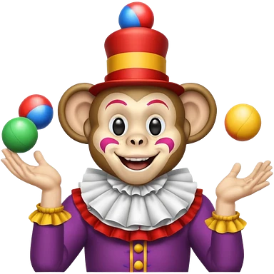 Monkey clown juggling balls, half body emoji