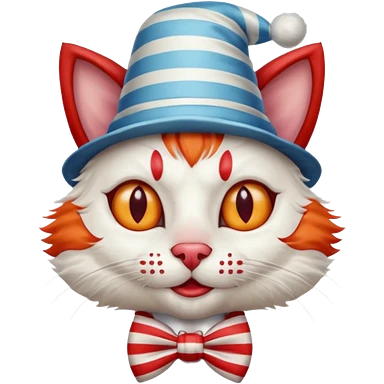 Cat clown with pointy hat, bow tie emoji