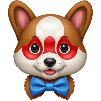 Dog clown with painted nose, bow tie emoji