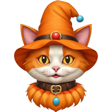 Cat clown with pointy hat, belt emoji