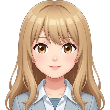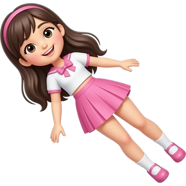 Pretty teenage girl emoji, full body, long hair laid on the back, girly outfit in pink and white, slim with natural proportions like a real girl, simple cute cartoon/emoji style, friendly smile, bright colors, minimal details, not weird looking emoji