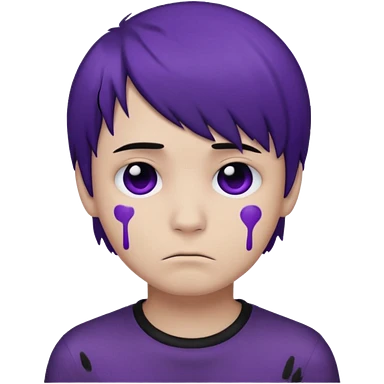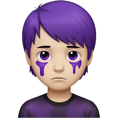 Normal emoji head, but with emo hair and black and purple paint around the eyes like an emo. And it’s looking sad. A boy emoji