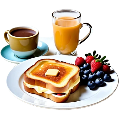 Un joli plateau sur lequel repose un délicieux petit déjeuner composé d’un croque-monsieur croustillant, d’un bol de yaourt aux fruits, d’une tasse de chocolat chaud garnie de guimauves et d’un joli vase contenant deux fleurs d’hibiscus emoji