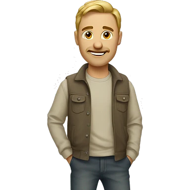 Робот, у которого вместо головы монитор компьютера в стиле 80-90-ых годов. Эмоции он выражает в виде пикселей на экране. Одет в оранжевую худи. Веселый и эмоциональный, можете переодеваться в другую одежду emoji