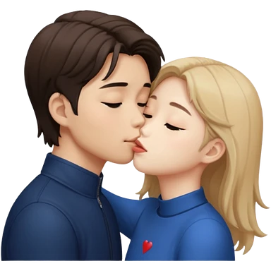 Казашка целуется с парнем с темными волосами до плеч emoji