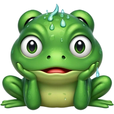 قورباغه ای که ناراحته و دستش رو سرشه و اشکش در اومده emoji | AI Emoji Generator