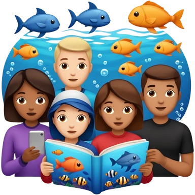des gens qui lisent un panneau afin d'en apprendre plus sur la vie marine emoji