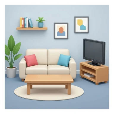 كنبة مع طاولة و تلفاز بتصميم عصري emoji
