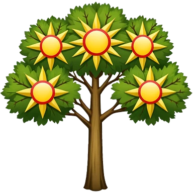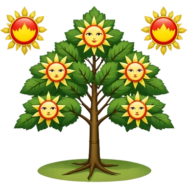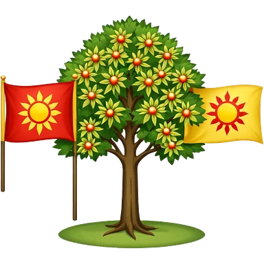 Флаг Чувашии(две мелкие красные полосы снизу, жёлтый фон, чувашское древо и три чувашских солнца из мифологии) emoji