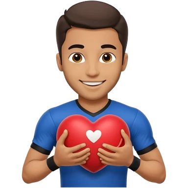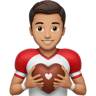 عکس یک فوتبالیست با یک توپ فوتبال به دست که توپ فوتبال دستش مثل فلبه emoji