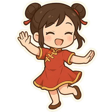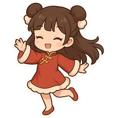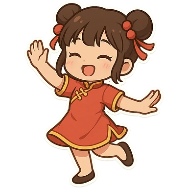 一个可爱女孩身穿新年服装,正在跳舞 emoji