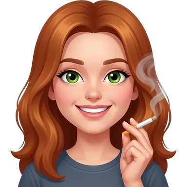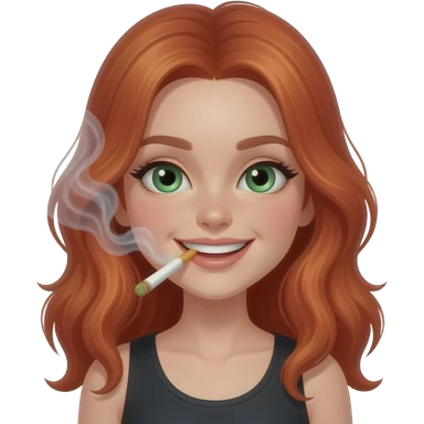 Ruby red headed girl smoking weed. With smoke. Green eyes. Smiley and flirty. No bangs emoji