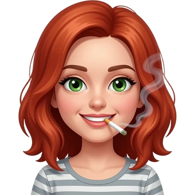 Ruby red haired girl smoking weed. With smoke. Green eyes. Smiley and flirty. No bangs emoji