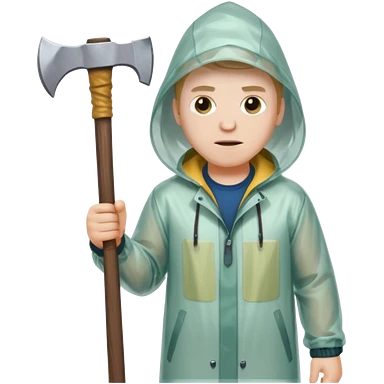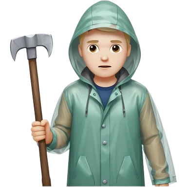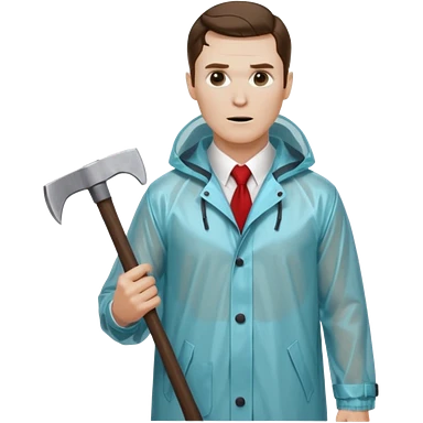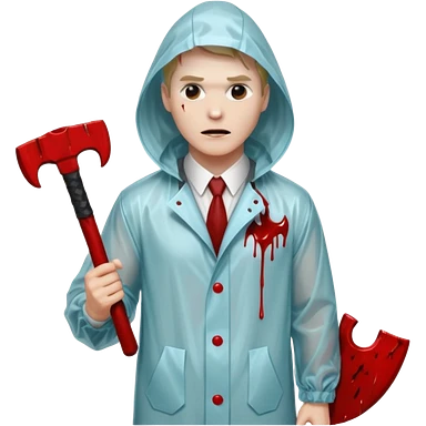 Американский психопат в прозрачном дождевике без капюшона с топором emoji
