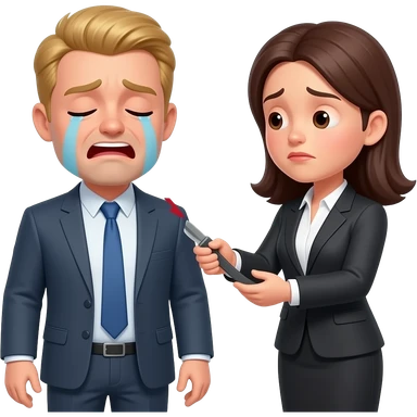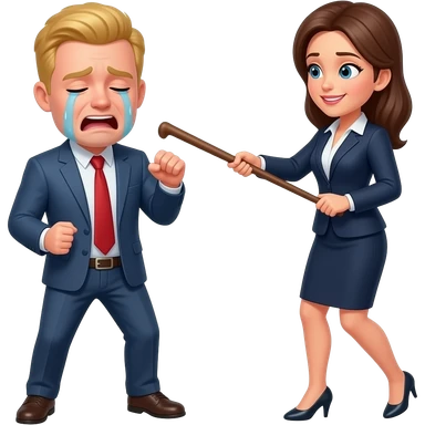 un uomo biondo piange perchè viene frustato con una cinghi dalla sua capa femmina d'ufficio emoji