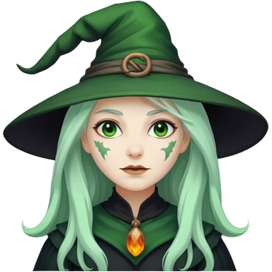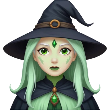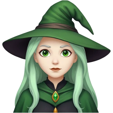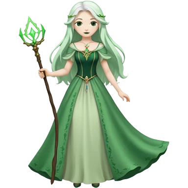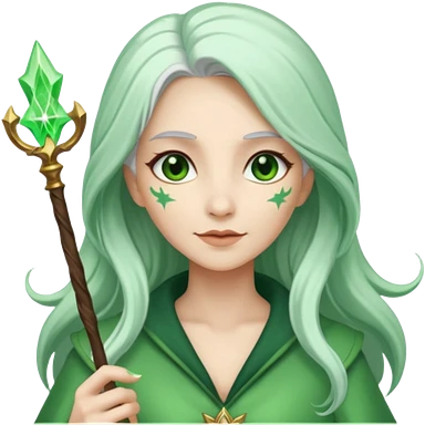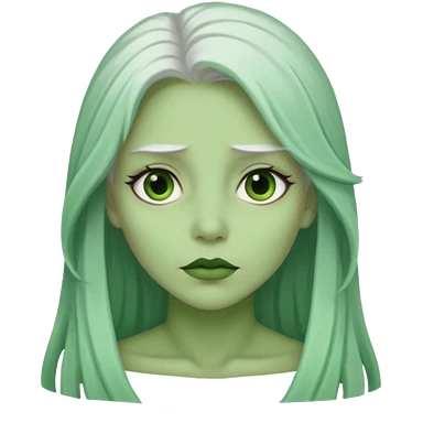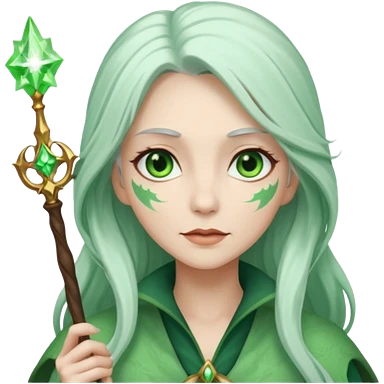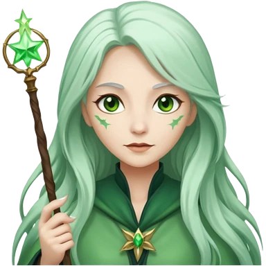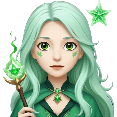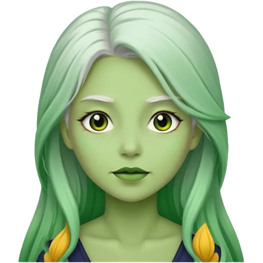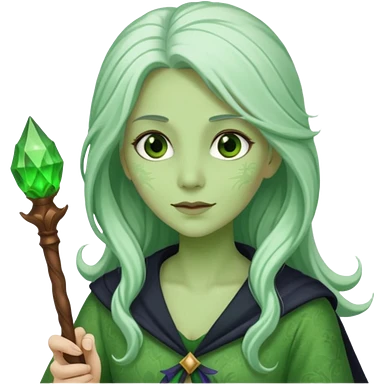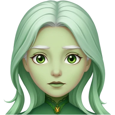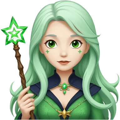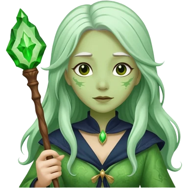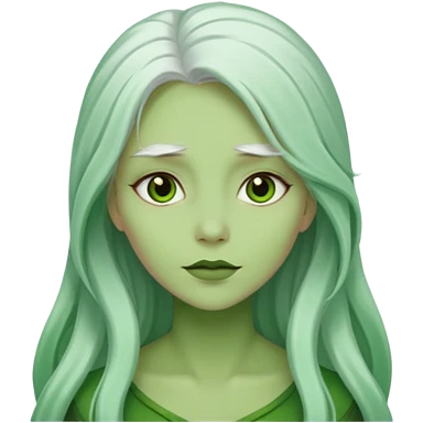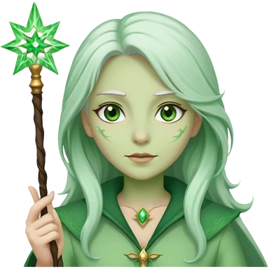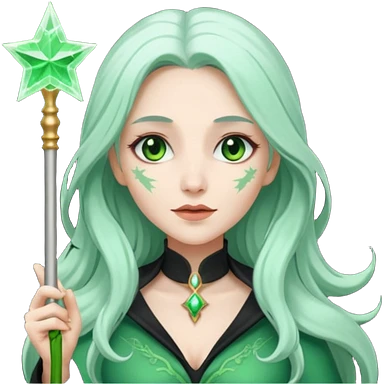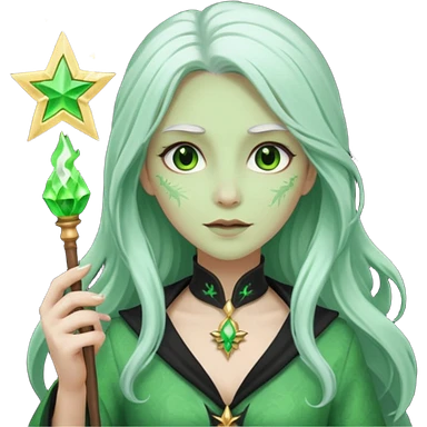 Woman with green skin color with long hair white color and carrying a magic wand emoji