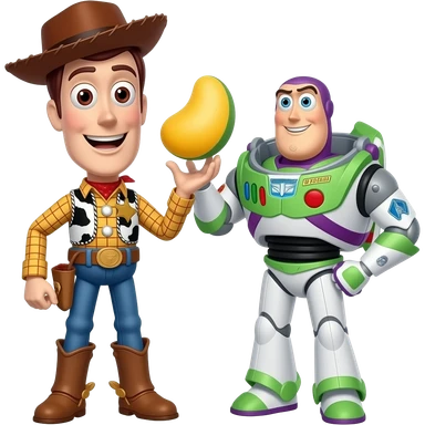 Woody and buzz are saying 67 mango mustard chicken stars emoji