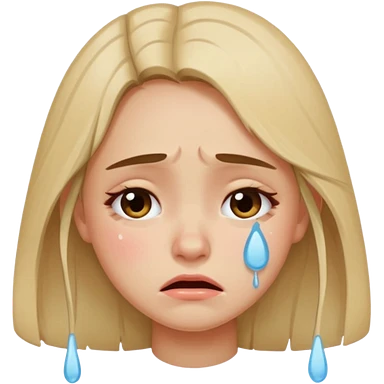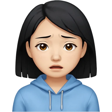 A crying East Asian woman with black hair, wearing light blue clothing. Her skin appears dry. emoji