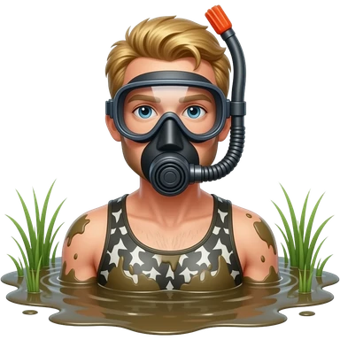 un uomo biondo che nuota in una palude fangosa con la maschera da sub emoji