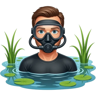 un uomo che nuota in una palude con la maschera da sub emoji