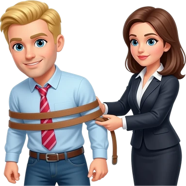 un uomo biondo che viene frustato con la cintura dalla sua capa femmina d'ufficio emoji