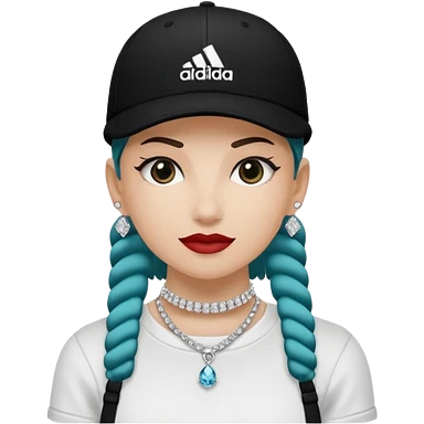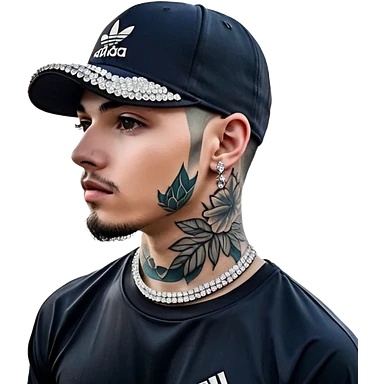 🥷🏻 crea un emojin de como el que está ay pero con gorra marca adida y un collar de diamantes ponle tatuaje en la cara y en la boca ponle brazos emoji