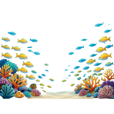 Deep-sea environment with coral reefs, schools of fish, and sea creature emojis forming intricate patterns, sunbeams penetrating water surface, gradient blues and turquoise, cinematic perspective, ultra-realistic water physics, immersive, magical ocean ambiance emoji