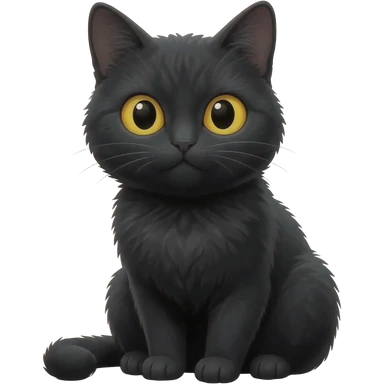 detailed emoji illustration of a cute black cat with bright yellow eyes sitting and looking forward, adorable expression, soft lighting, cute emoji style emoji