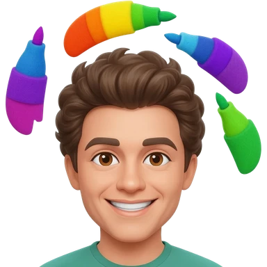 Create an emoji inspired by a specific brand of colored felt tip pens, for example, Stabilo or Sharpie, in a set of seven vibrant rainbow colors. Keep the brand's aesthetic but adapt it to a friendly emoji format without pencil. emoji