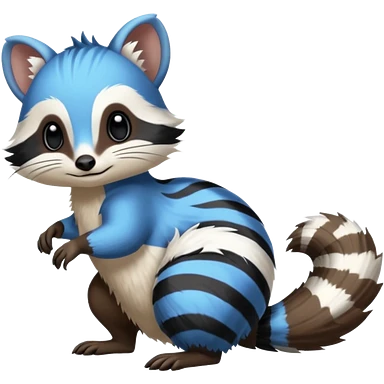 Black/White/Blue Skunk-Raccoon-Ringtail-Cat-Badger-Furret-Numbat-Minccino-Meowstic-Teddiursa-animal-fusion (full body) emoji