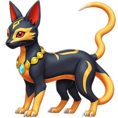 Colorful orange red black yellow Bastet-Salandit-Umbreon-Gatomon-Vernid-Protogen-Digimon-Fakémon-Pokémon-creature (full body) emoji